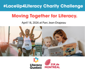 Every step counts. On April 18, at Parc Jean-Drapeau, we will be taking part in our annual #LaceUp4Literacy Charity Challenge, an inspiring event organized by the 21k de Montréal. Together, we’ll run, walk, and move to support English-speaking Quebecers in gaining the essential literacy skills they need to thrive.