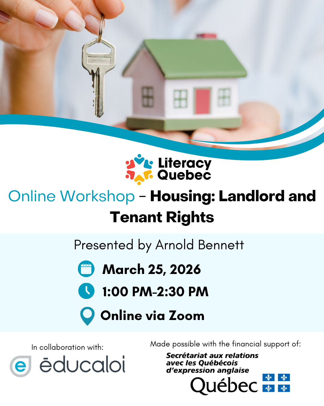 This workshop is open to Literacy Quebec members and their learners, volunteers, and the general public. For any questions, please contact Jessica at communications@literacyquebec.org. This workshop is part of the Community Mobilization Project, a collaboration with Éducaloi to provide free legal information workshops to learners, staff, and the general public.